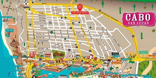 Estamos ubicados en el centro de Cabo San Lucas, Baja California Sur, Mexico a 20 minutos caminando de la Marina y area turística, o a 5 minutos en auto. Es una zona segura, cerca de tienditas y taquerias locales.